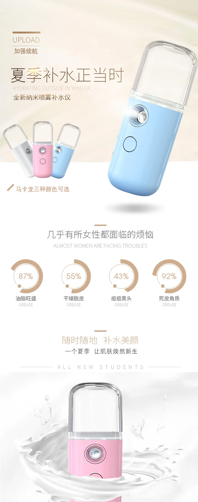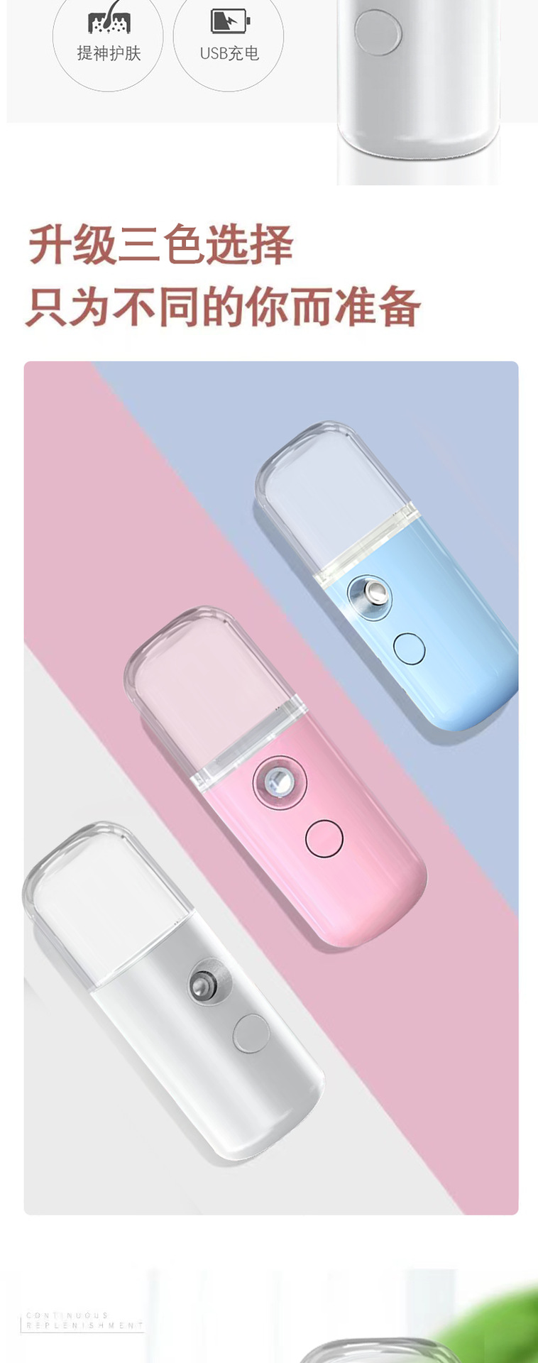 平台首页 > 美容器材> > 爆款纳米喷雾补水仪手持便捷蒸脸器充电小丸子补水仪现货批发 2个