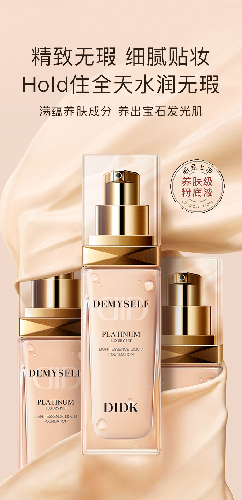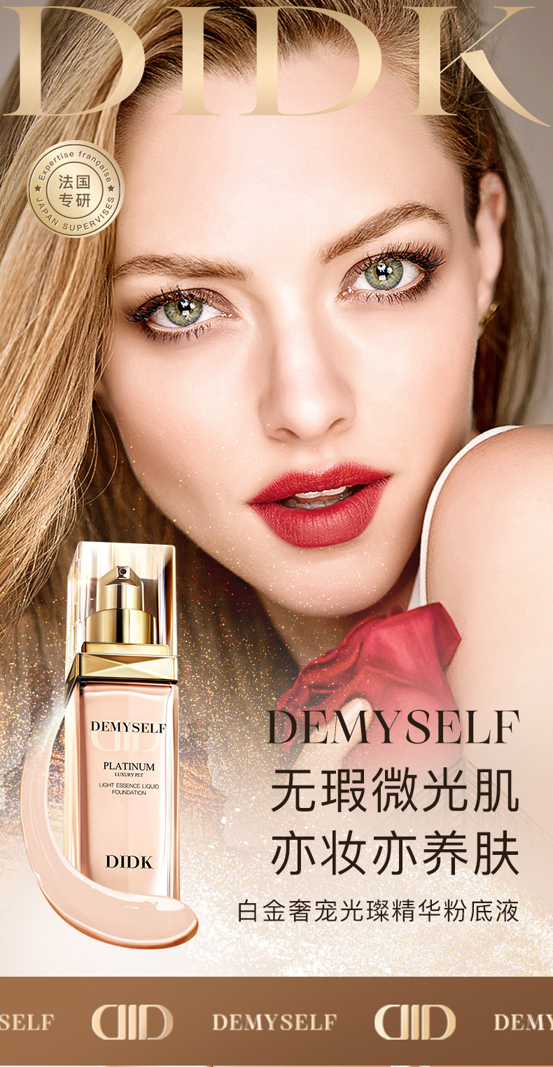 法国DIDK白金奢宠光璨精华粉底液养肤珍珠提亮持久遮瑕不脱妆 1瓶