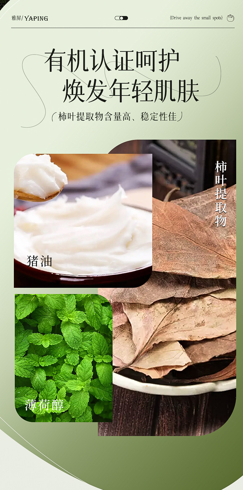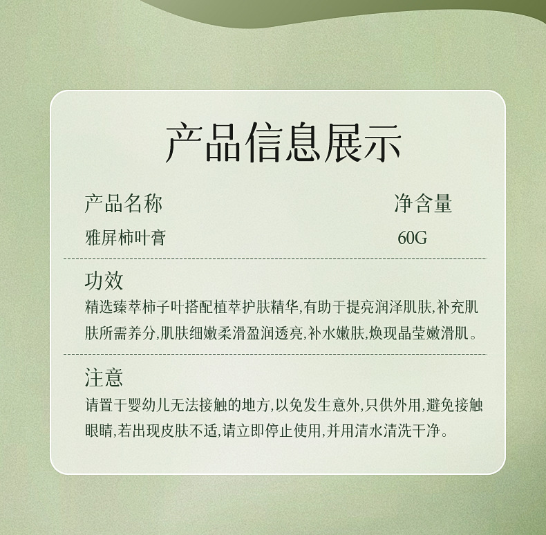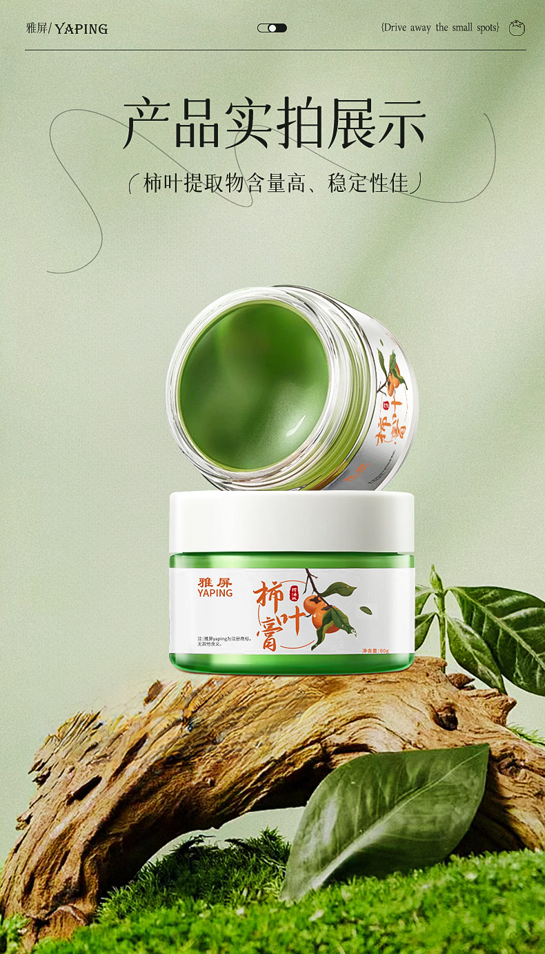 雅屏柿叶猪油膏柿叶膏面霜手工制作植物精萃紧致肌肤提亮去暗 1瓶
