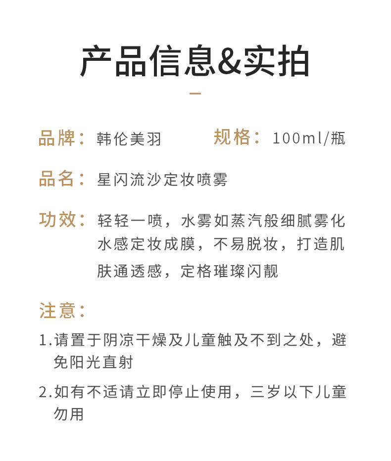 平台首页 > 美容产品> > 厂货通韩伦美羽星闪流沙定妆喷雾防水防汗不脱妆跨境美妆护肤厂家 1瓶