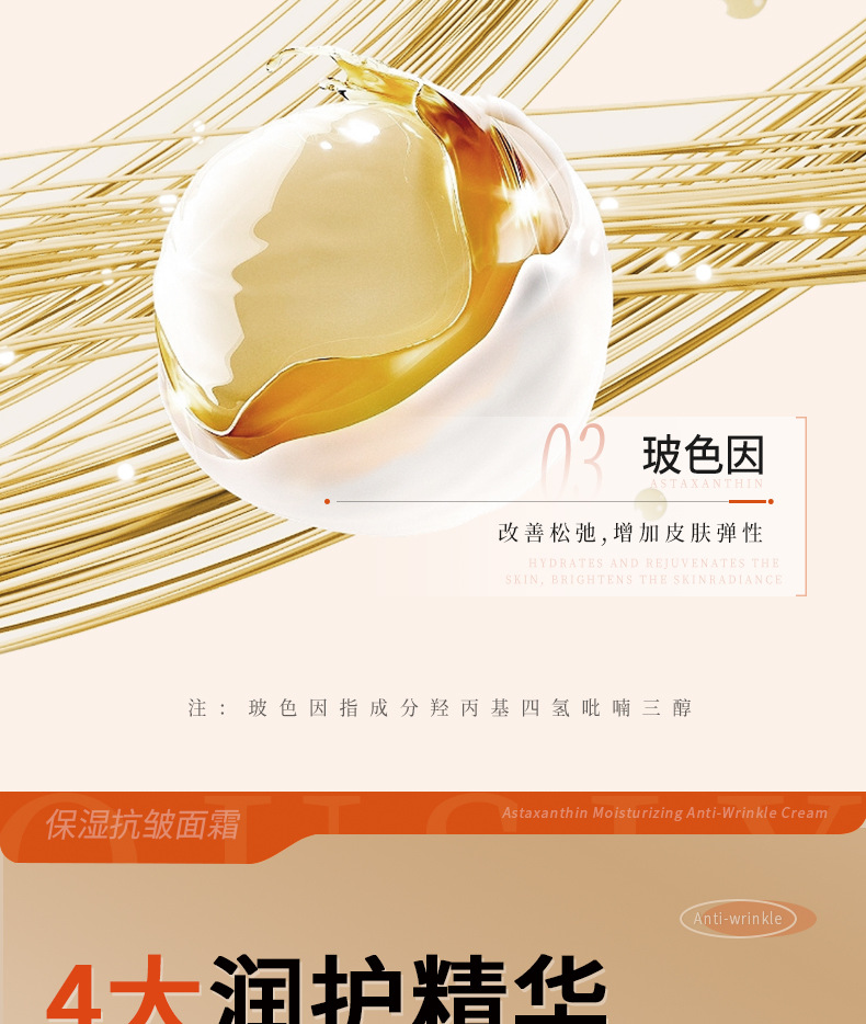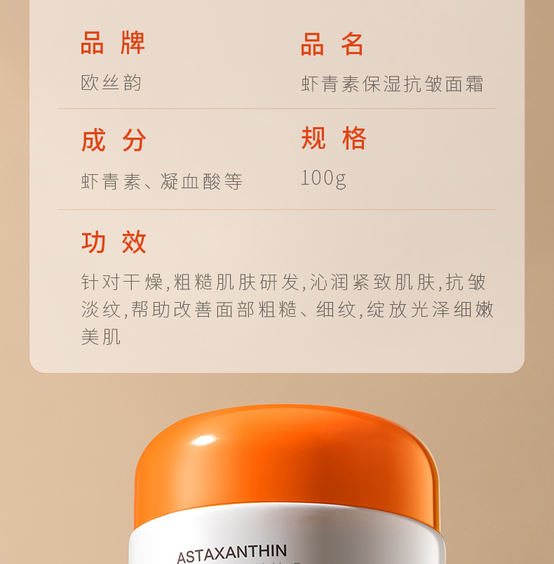 欧丝韵虾青素保湿抗皱面霜抗皱紧致抗初老淡化细纹补水滋润脸部霜 5瓶
