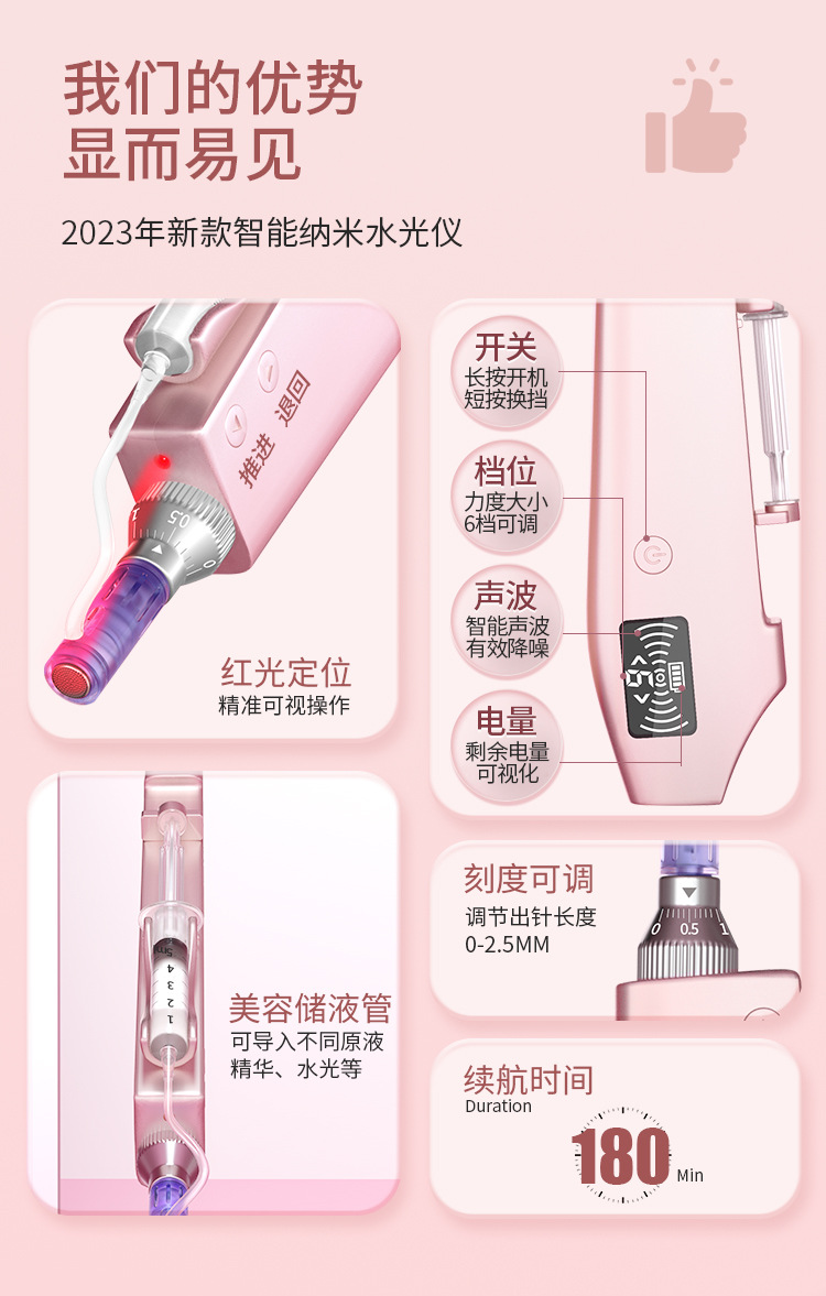 纳米微晶导入仪电动微针仪器二合一导入原液中胚脸部MTS 溶斑水光枪