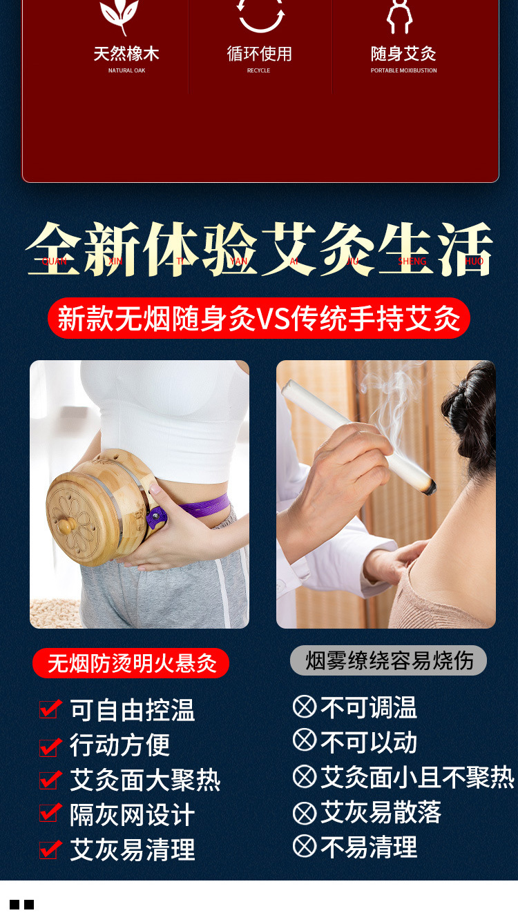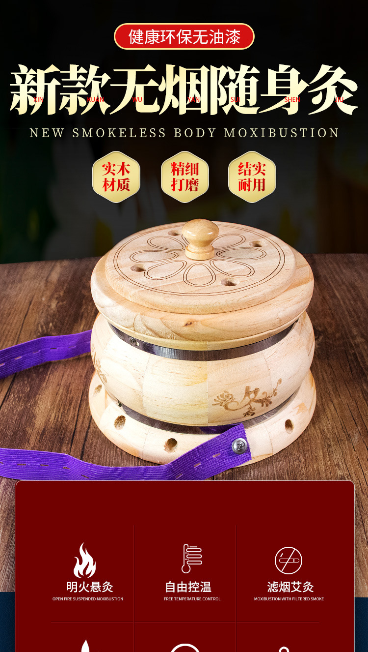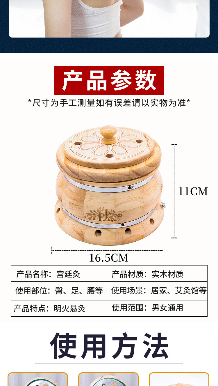 宫廷灸艾灸木箱艾灸熏蒸仪腹部腰部热敷带艾灸盒子木制器具艾灸盒 1个