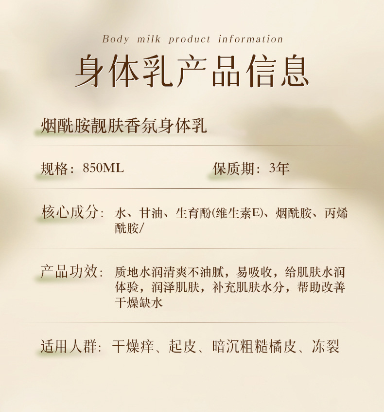 平台首页 > 美容产品> > 山茶花香氛烟酰胺身体乳滋润全身留香清爽不油腻377美白身体乳 1盒